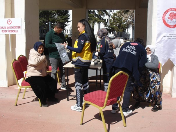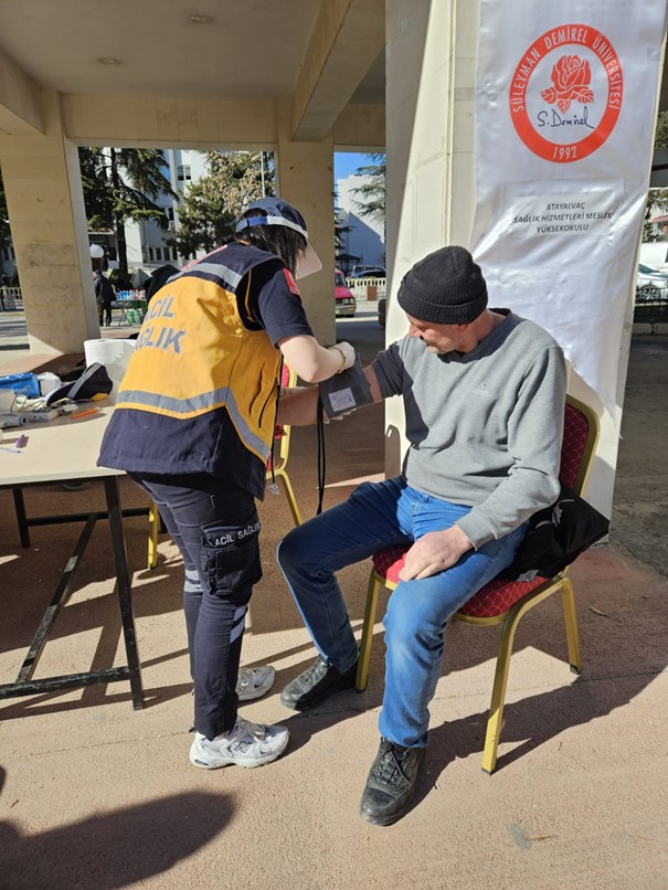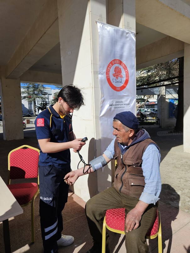 Süleyman Demirel Üniversitesi Atayalvaç Sağlık Hizmetleri Meslek Yüksekokulu İlk ve Acil Yardım Programı öğrencileri, Ramazan ayında anlamlı bir sosyal sorumluluk çalışmasına imza attı. Yalvaç İlçe Sağlık Müdürlüğü Acil Tıp Teknisyeni ve aynı zamanda Atayalvaç Sağlık Hizmetleri MYO’da ücretli öğretim elemanı olarak görev yapan Mustafa KUTLU’nun rehberliğinde yürütülen İleri Yaşam Desteği Uygulamaları dersi kapsamında öğrenciler, 9 Mart’ta başlayan ve 13 Mart’a kadar devam edecek uygulama çerçevesinde Yalvaç Anlatan Meydanı’nda vatandaşlara sağlık ölçümleri gerçekleştiriyor.